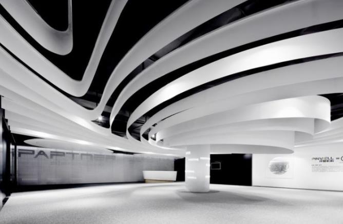 與一般的展廳相比,要采用科幻風格,這種展廳的裝修空間更加緊湊,更加炫酷,展廳區域一定要大,辦公區域和展廳區域風格一定要相融合。